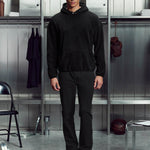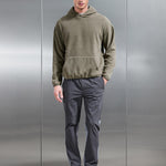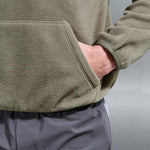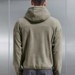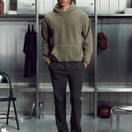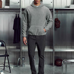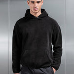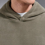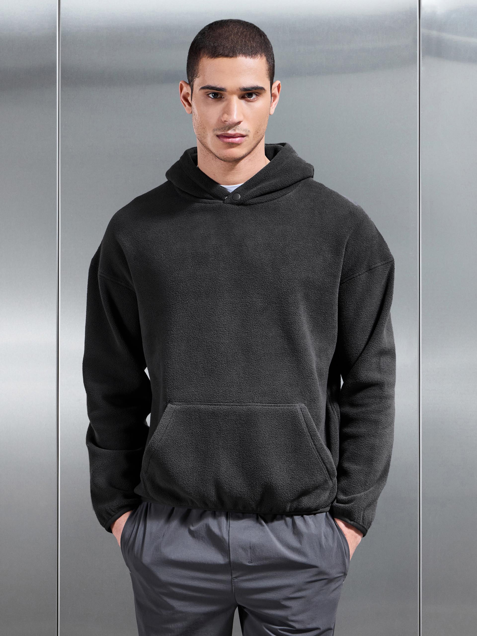 Hoodie coupe relaxed avec capuche 3 panneaux. Polaire mi-lourd pour la chaleur et le confort. Épaules tombantes. Manches longues avec ourlet élastiqué ton sur ton. Coutures plates ton sur ton sur l'ensemble. Poche kangourou en tissu assorti. Ourlet élastiqué ton sur ton.