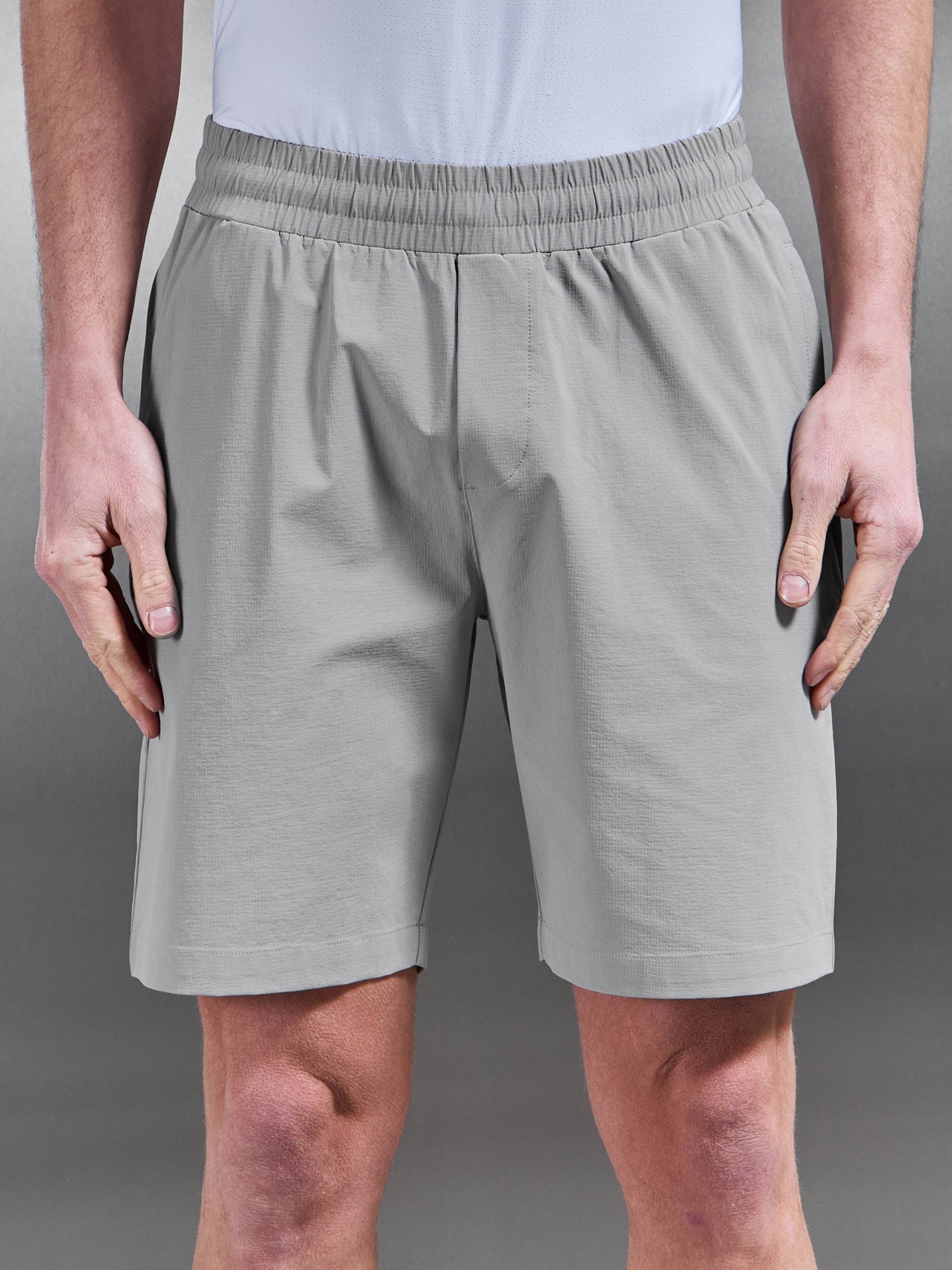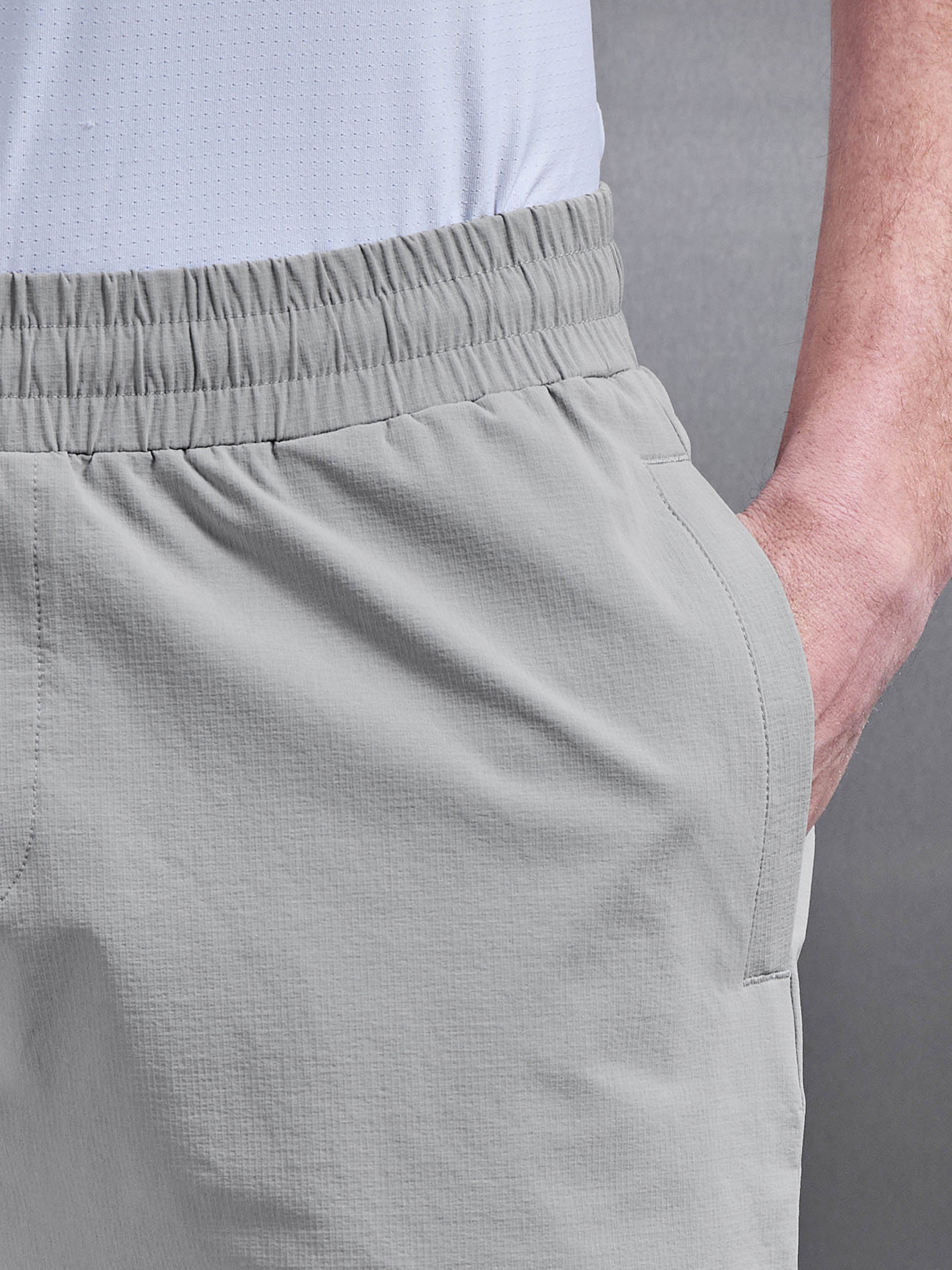 Coupe slim avec ceinture élastiquée. Nylon ripstop léger 4 directions. Cordon de serrage interne. Poches glissières avec poches zippées dissimulées en couture. Concealed zip pocket to the back. Ourlet cousu.