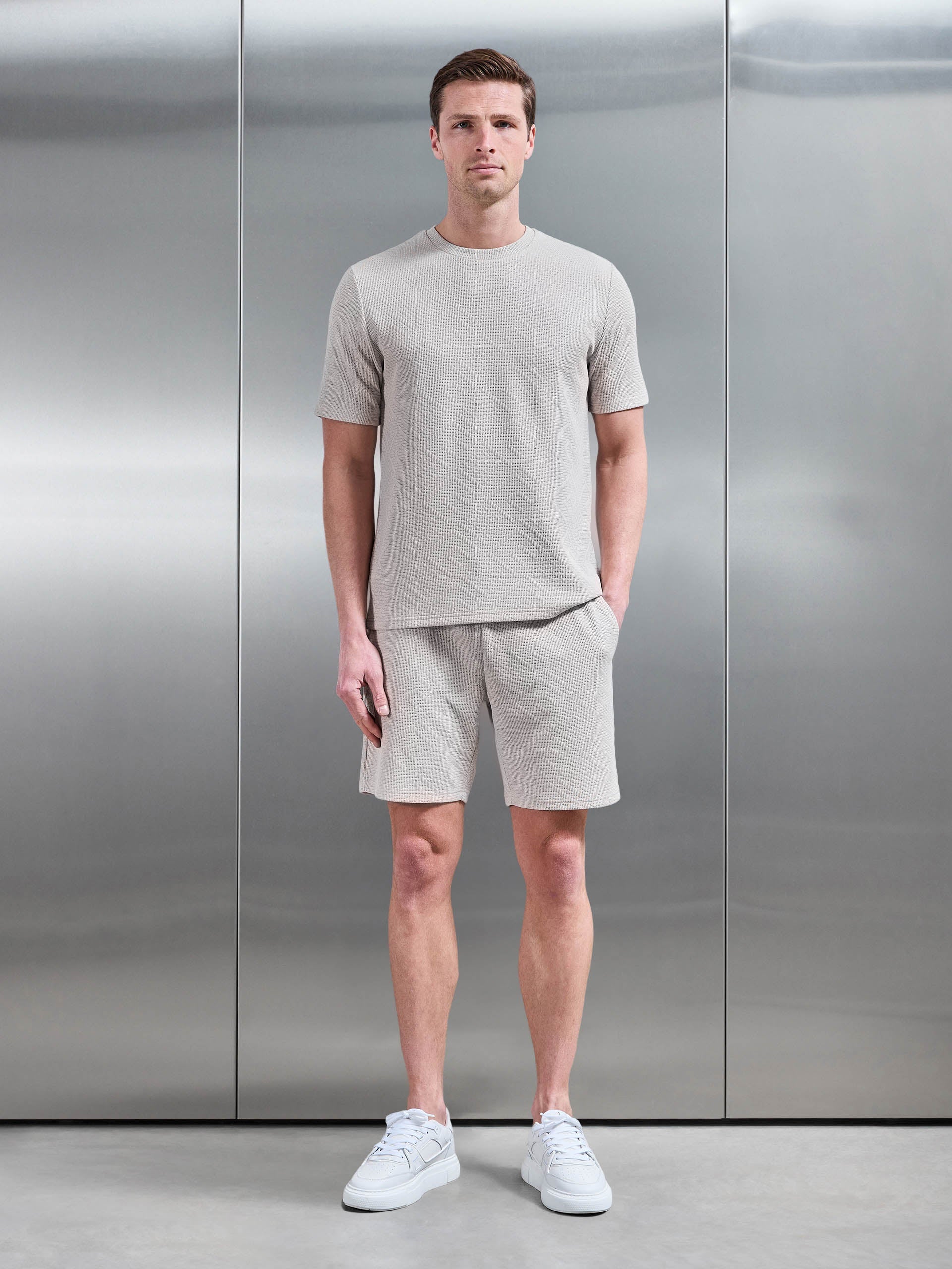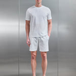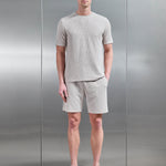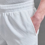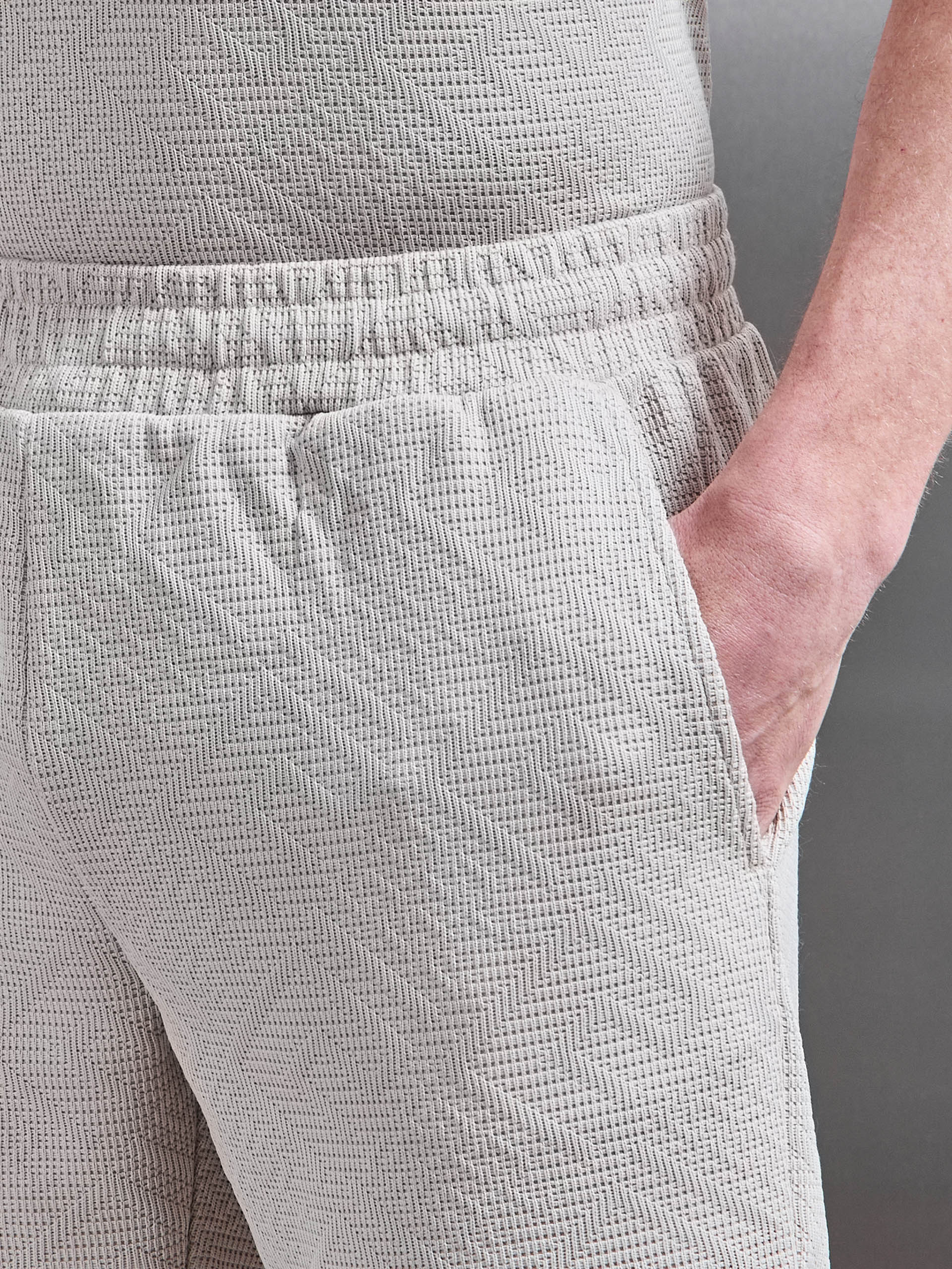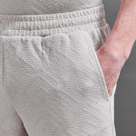 Coupe slim avec ceinture élastiquée. Jersey mi-lourd à texture subtile. Cordons internes assortis. Poches latérales à la ceinture. Ourlet cousu.