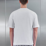 T-shirt coupe relaxed avec col rond côtelé. Jersey brossé mi-lourd. Épaules tombantes. Broderie ton sur ton au col dos. Ourlets cousus sur les manches et le corps.