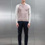 Coupe slim knitted polo shirt with col évasé. Made from a soft touch cotton yarn, knitted into a épaisseur moyenne. Arne branded buttons. Couleur contrastée long raglan sleeves with rib hem finish. Rib hem finish to main body.