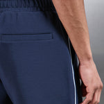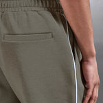 Coupe slim avec ceinture élastiquée. Tissu mi-lourd ultra doux. Cordons de serrage. Poches latérales à la ceinture et poche passepoilée dos. Passepoil blanc contrastant sur les coutures latérales. Pince sur chaque jambe. Ourlet cousu.