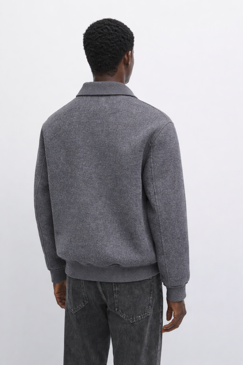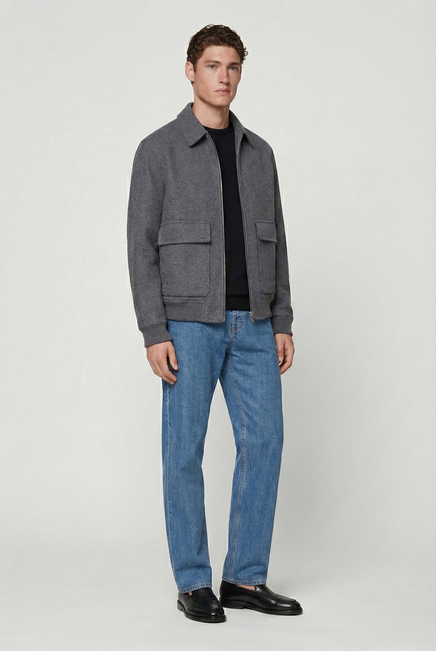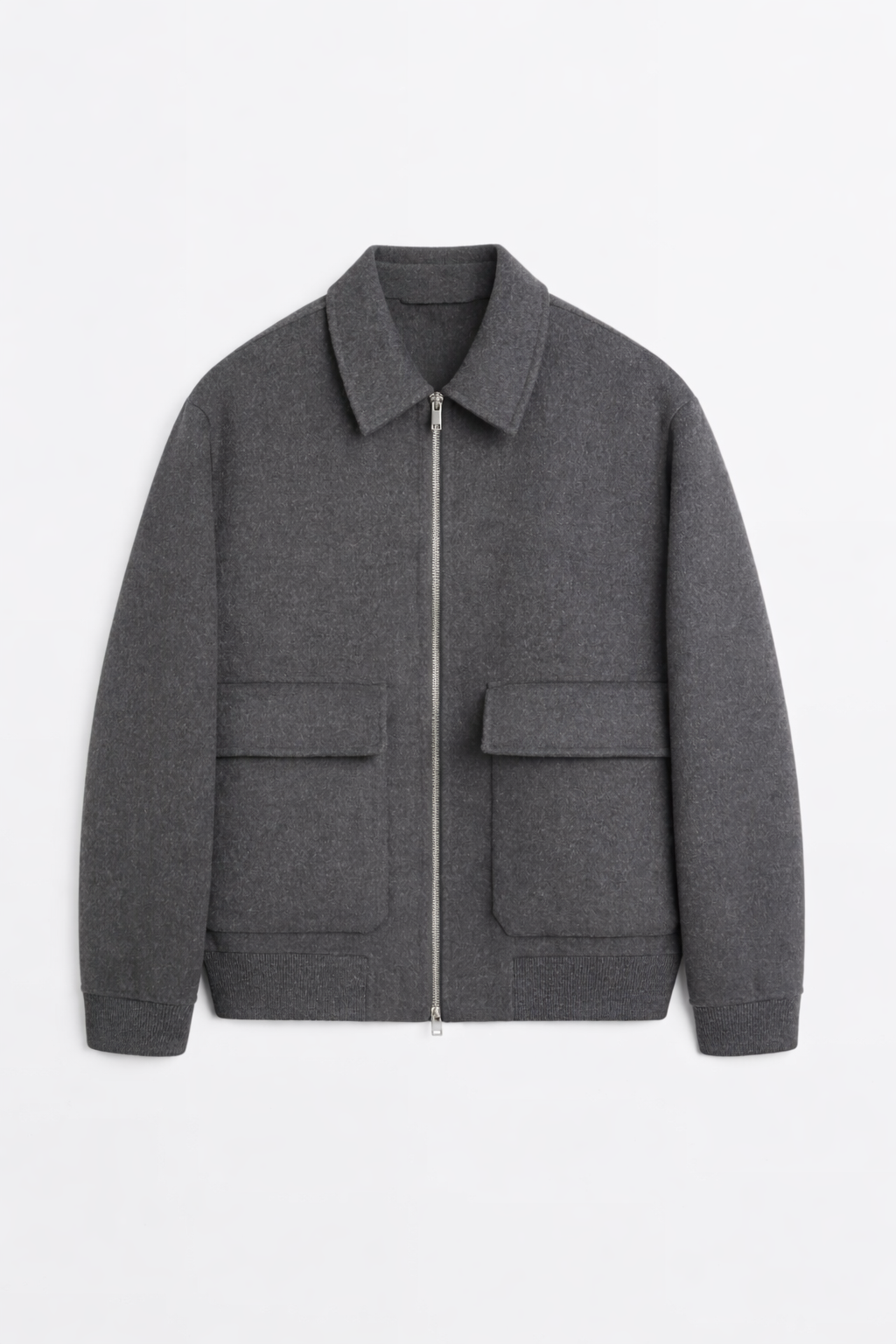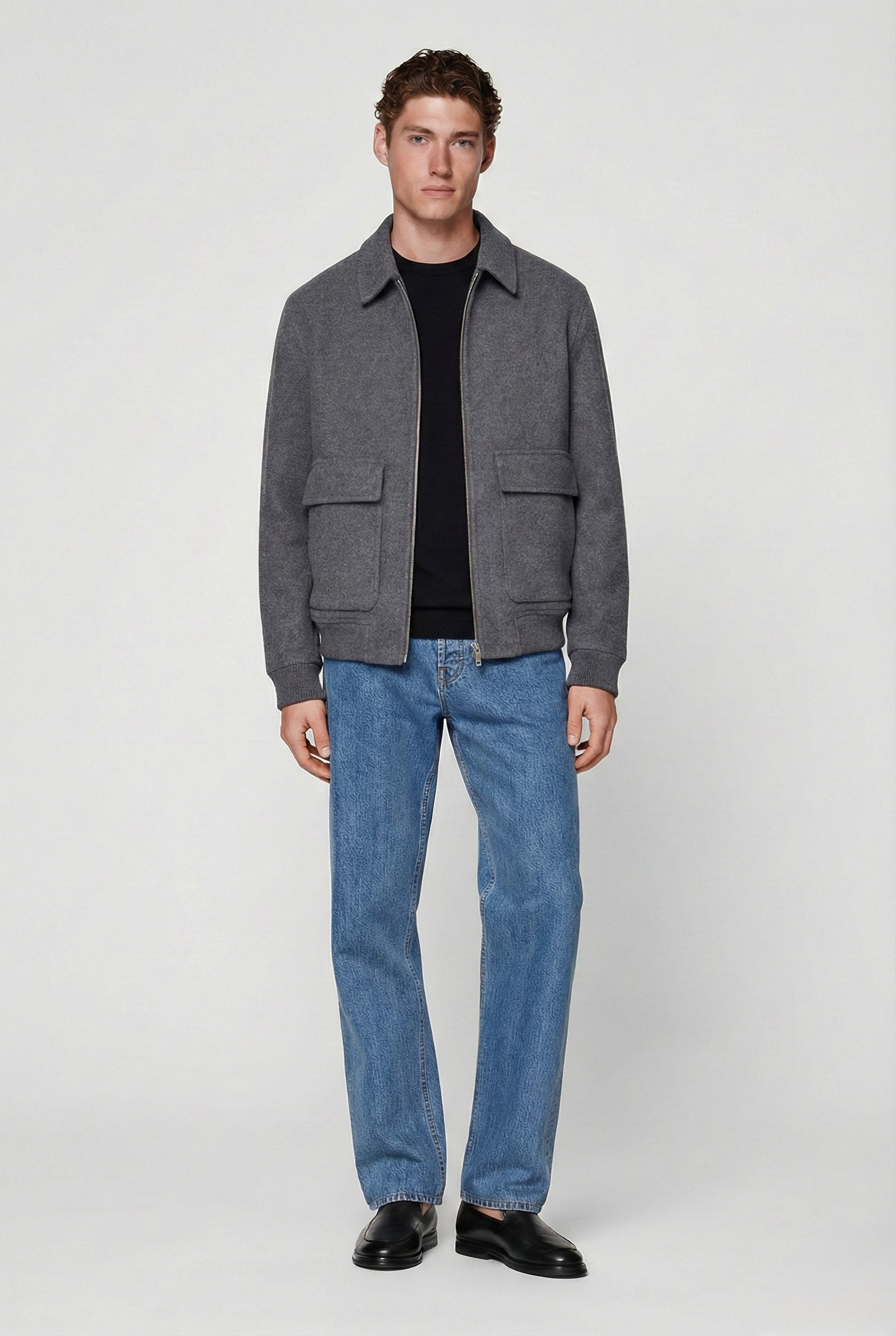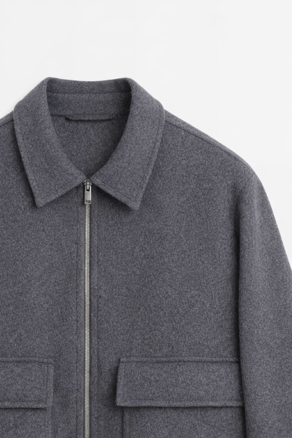 Crafted from a refined wool-blend fabric, this jacket combines warmth, structure, and understated elegance. Designed with a zip closure for versatility and ease of wear, it adapts effortlessly to both casual and more elevated looks.