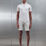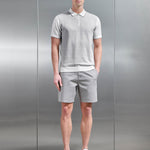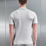 Coupe slim knitted polo with col évasé. Soft touch cotton yarn knitted into a mid weight fabrication. Custom 2-colour pattern to front body. Concealed zippé fastening with arne branded zippé puller. Manches courtes with côtelé hem cuff finish. Tonal côtelé hem finish to main body.
