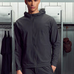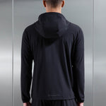 Coupe slim avec capuche 3 panneaux. Tissu nylon léger avec stretch. Cordon interne pour ajustement de la capuche. Fermeture zip central exposé ton sur ton. Détails imprimés réfléchissants gris sur l'ensemble. Manches longues avec poignet partiellement élastiqué. Poche kangourou avec fermeture zip latérale dissimulée. Cordon interne à l'ourlet pour ajustement personnalisé.