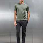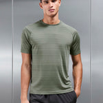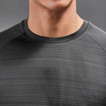 T-shirt coupe slim avec col rond. Jersey perforé chiné léger. Manche raglan courte avec panneau d'épaule ton sur ton. Surpiqûre double aiguille ton sur ton au poignet et à l'ourlet. Logo caoutchouc ton sur ton au col dos.