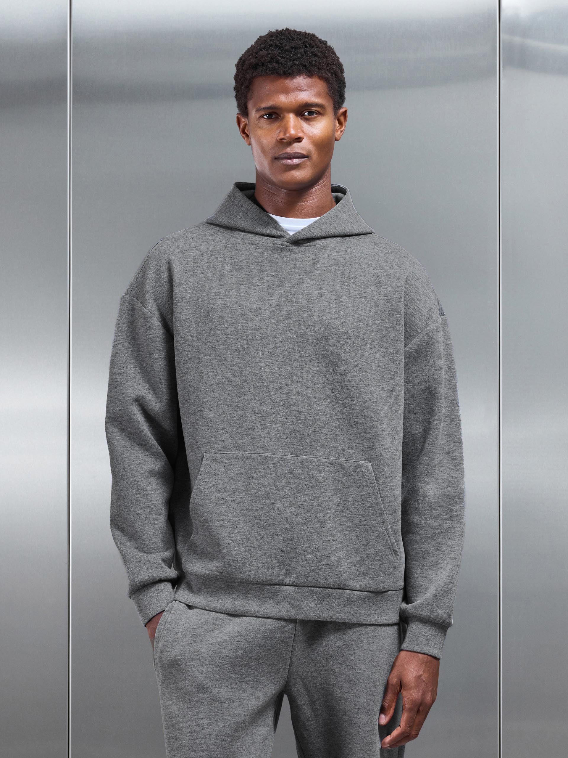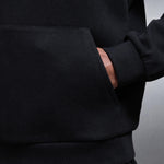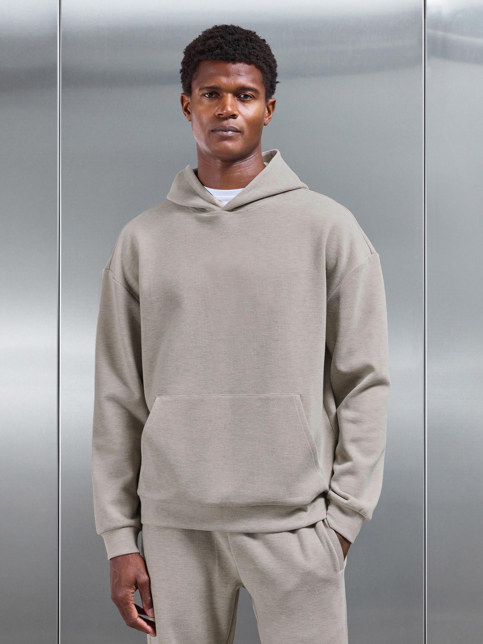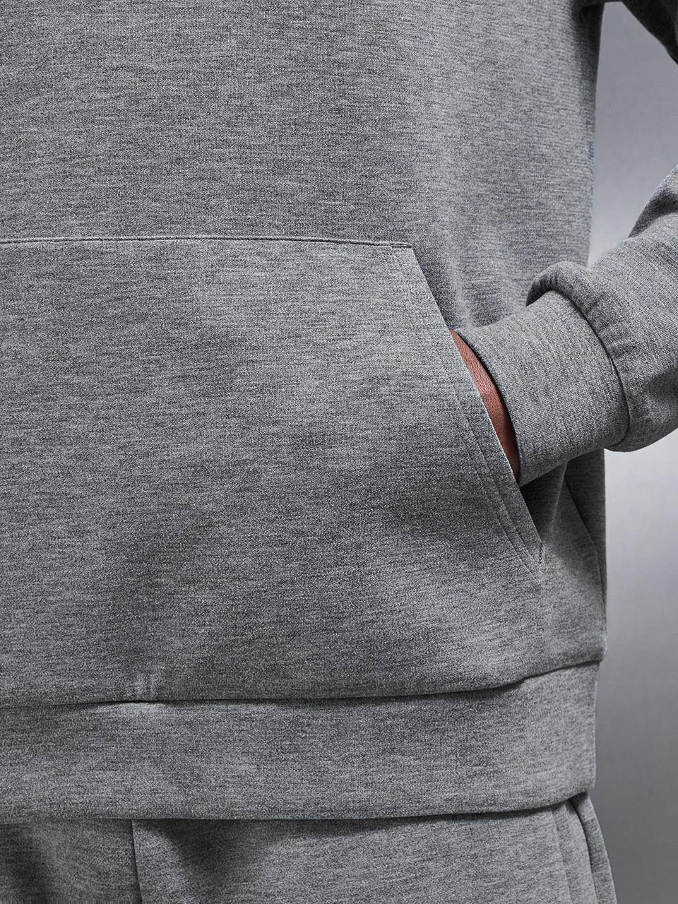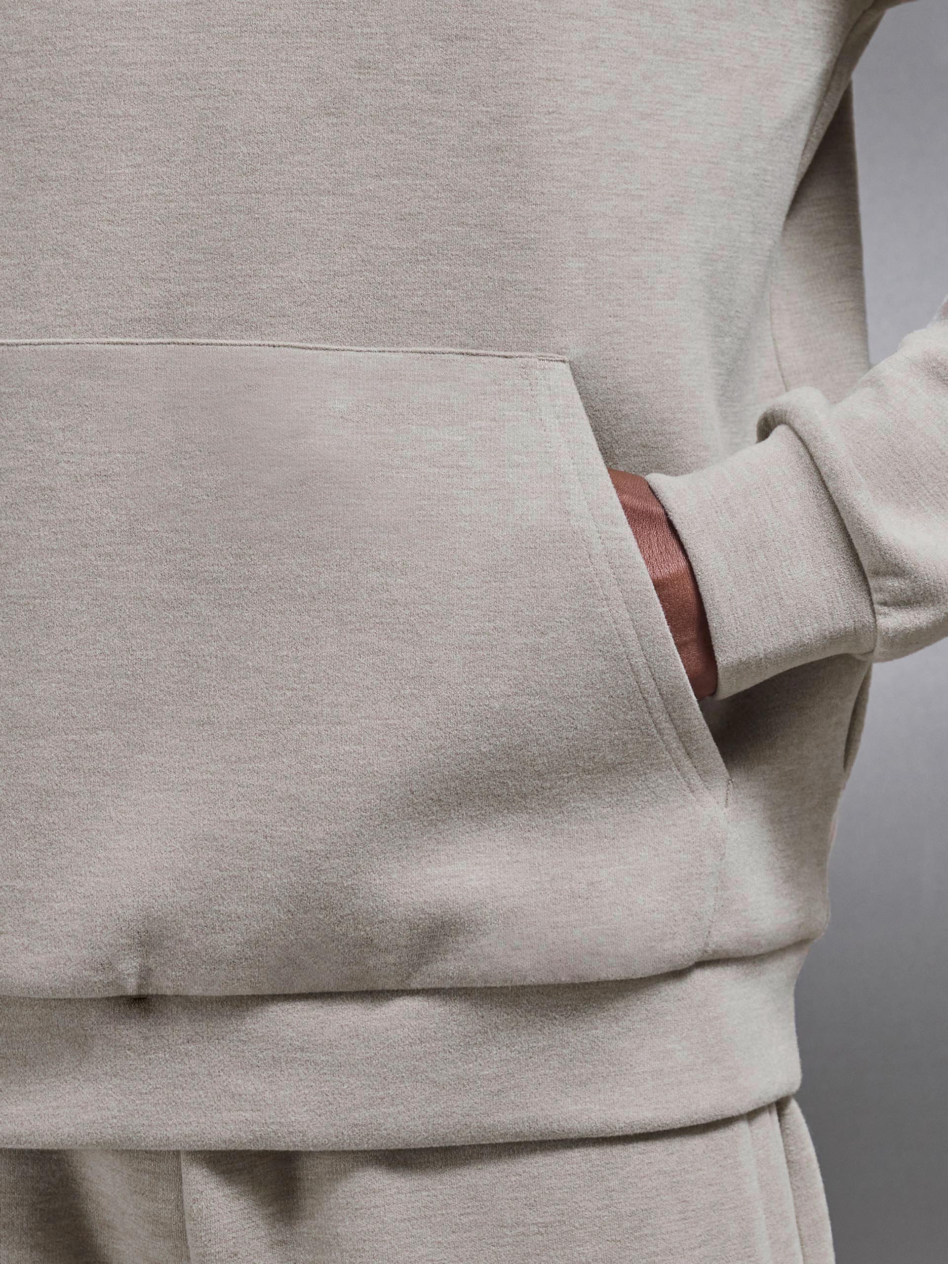 Hoodie relaxed avec capuche 3 panneaux. Mid-weight ultra soft knitted fabrication. Épaules tombantes pour une coupe relaxed. Poche kangourou en tissu assorti. Manches longues. Poignets et bas côtelés ton sur ton.