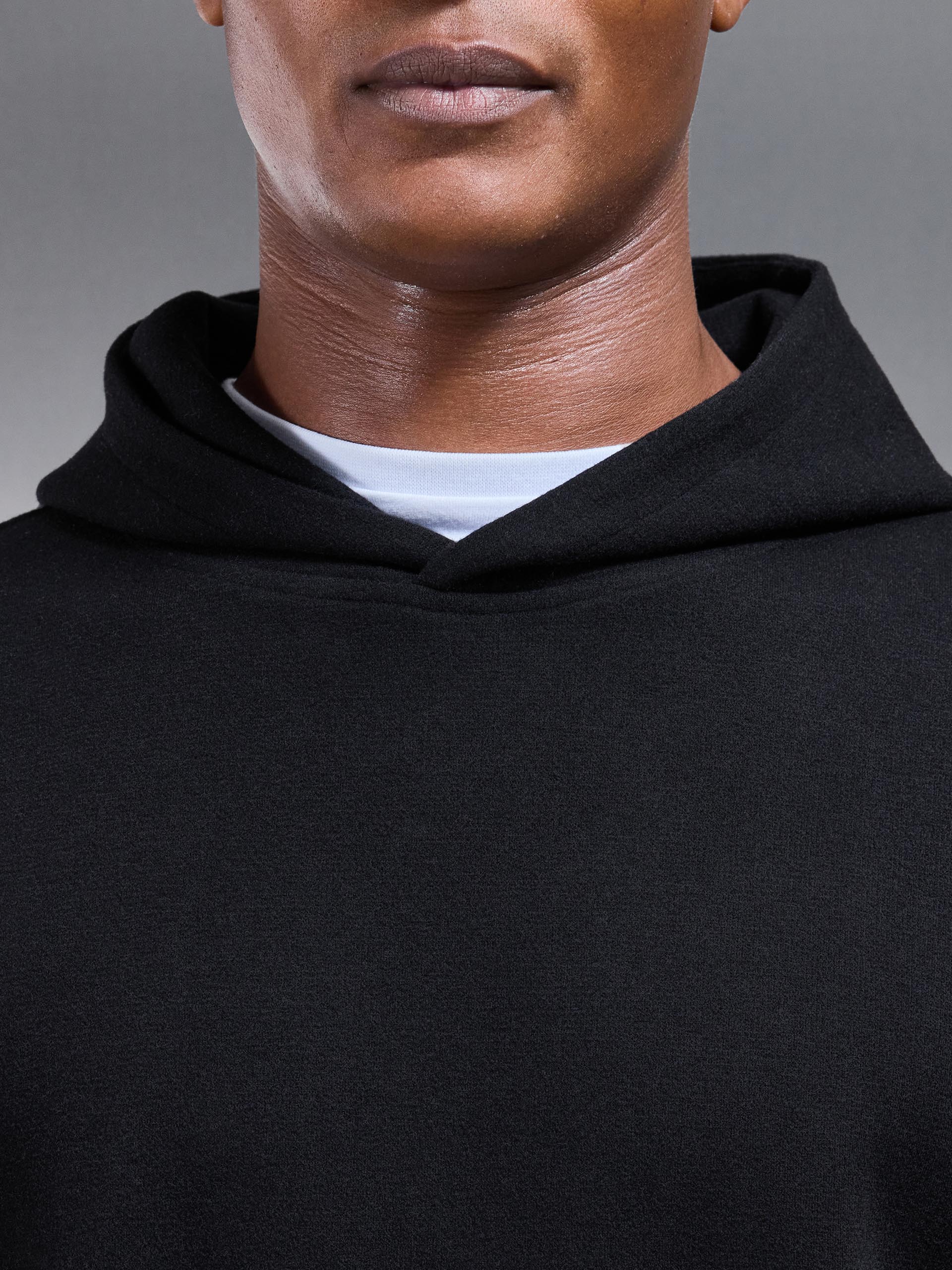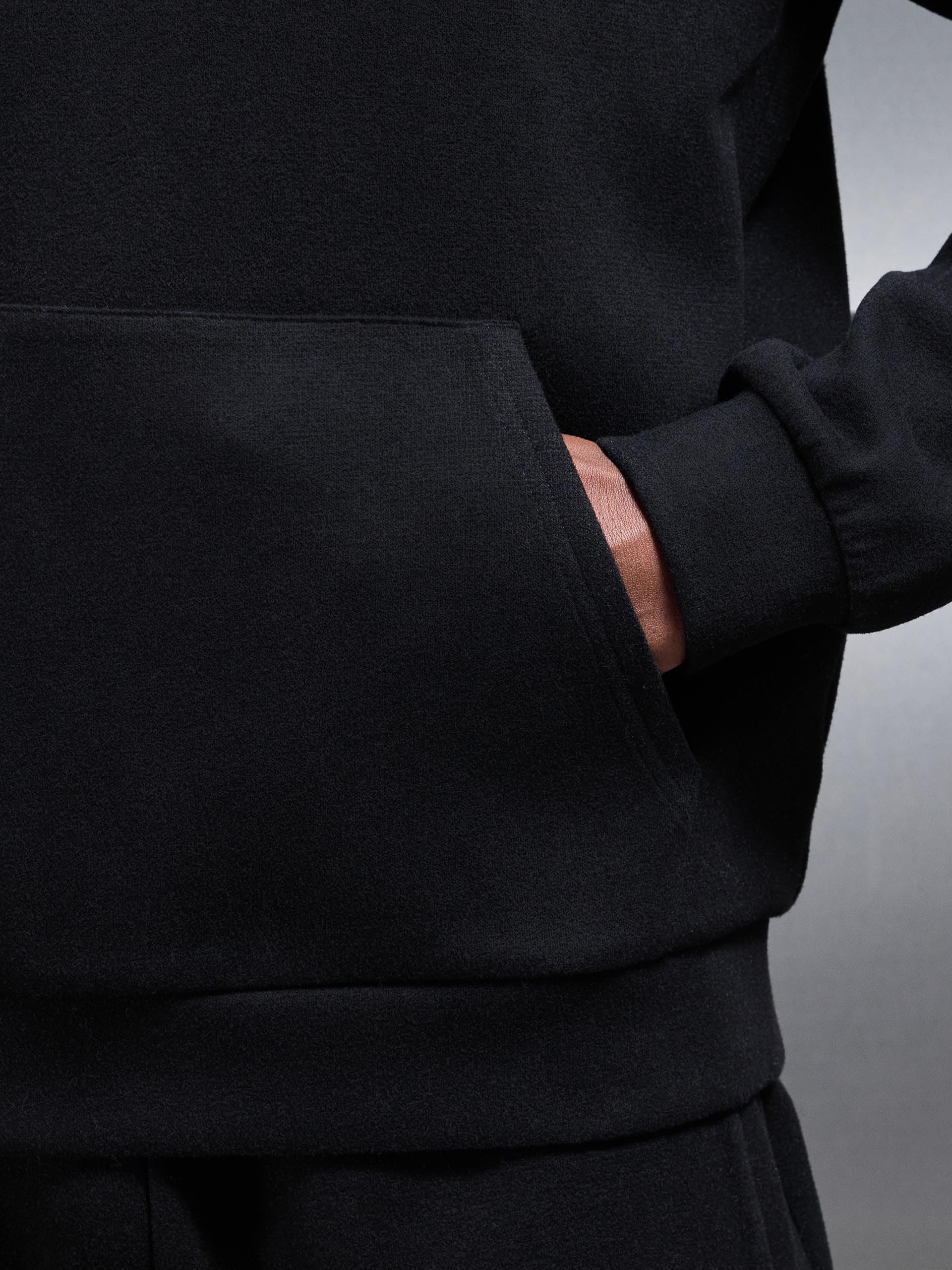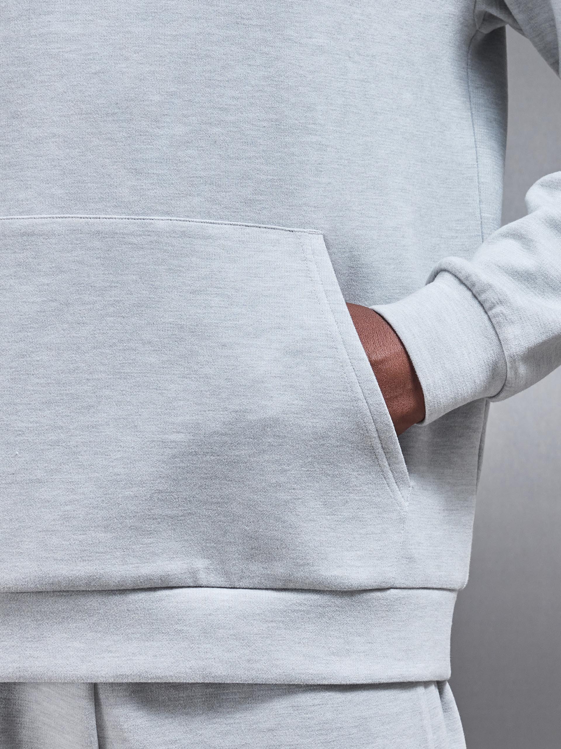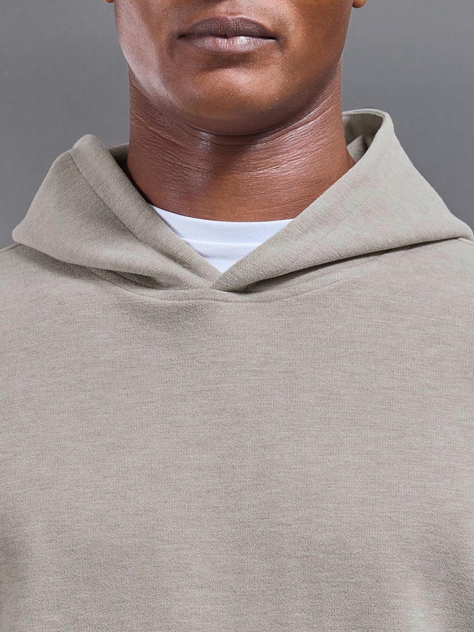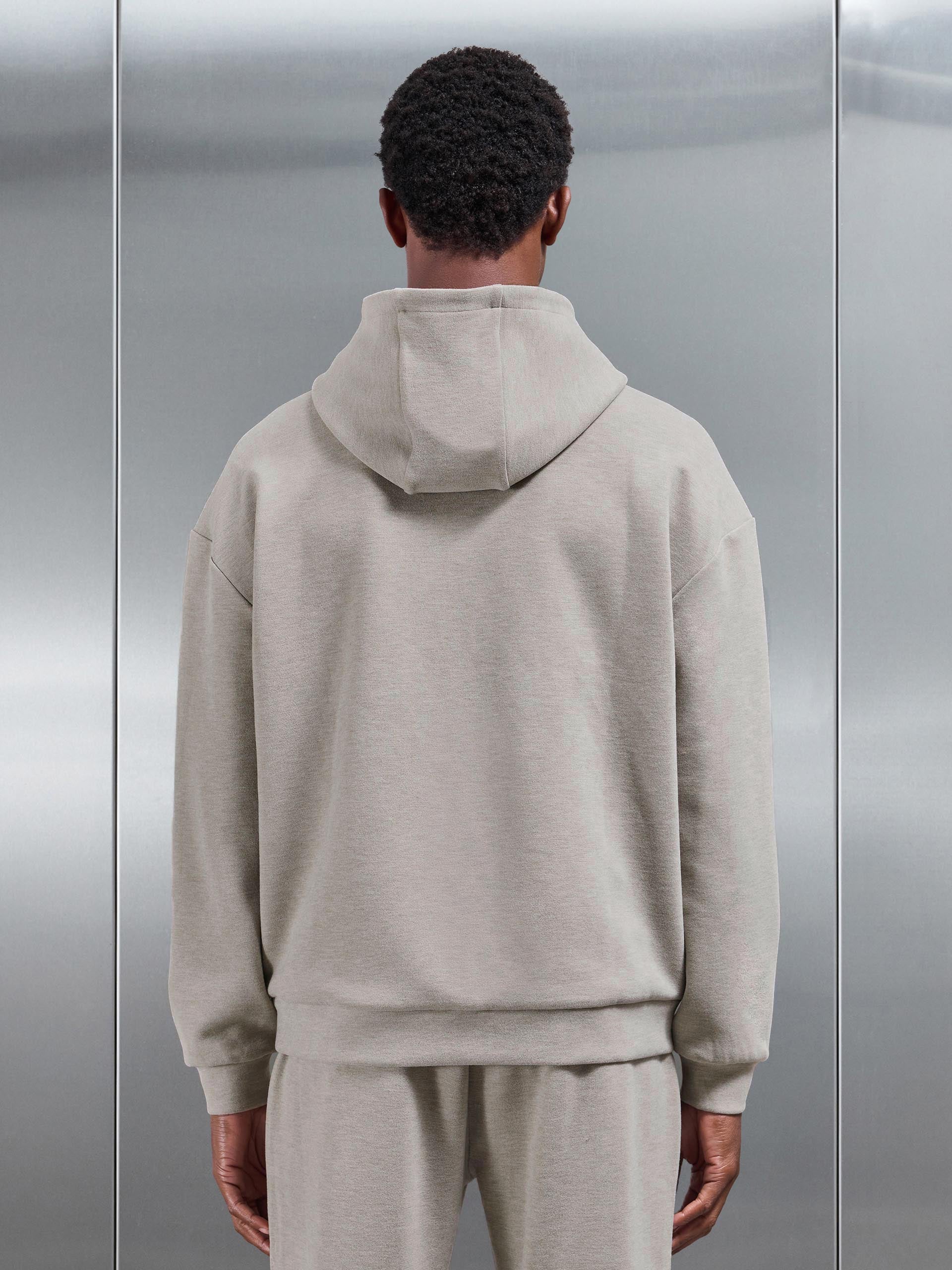 Hoodie relaxed avec capuche 3 panneaux. Mid-weight ultra soft knitted fabrication. Épaules tombantes pour une coupe relaxed. Poche kangourou en tissu assorti. Manches longues. Poignets et bas côtelés ton sur ton.