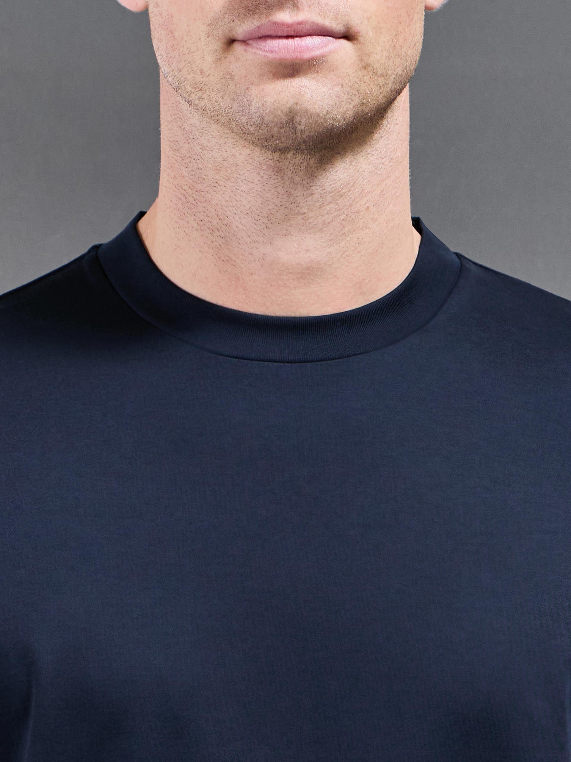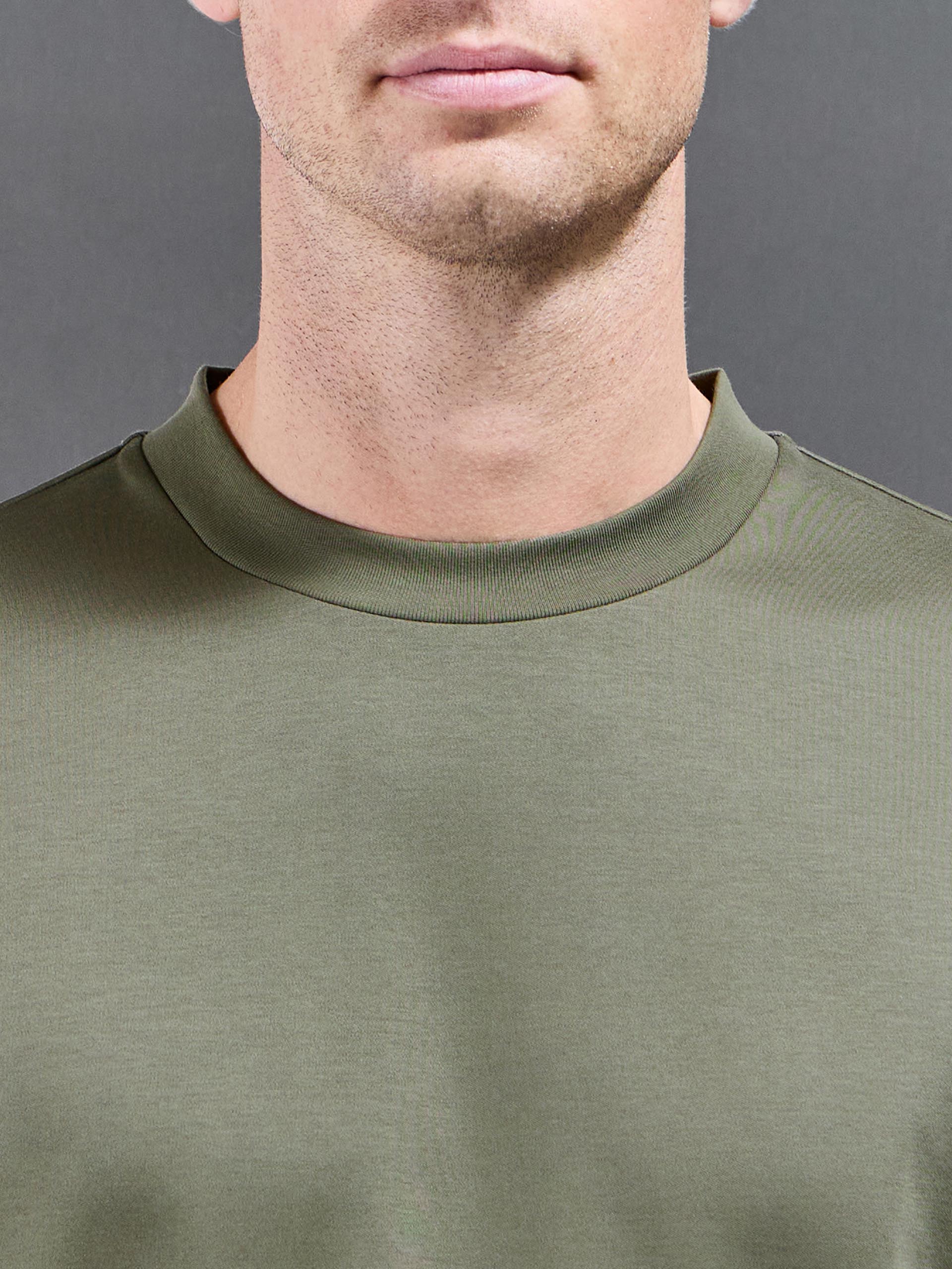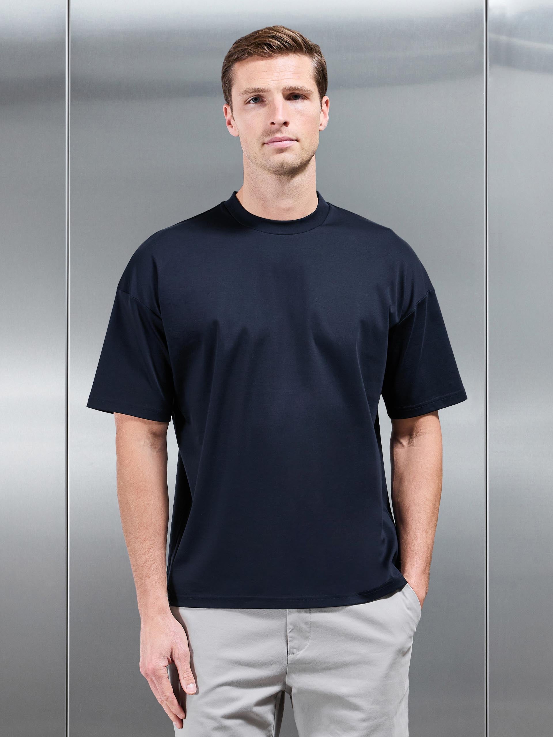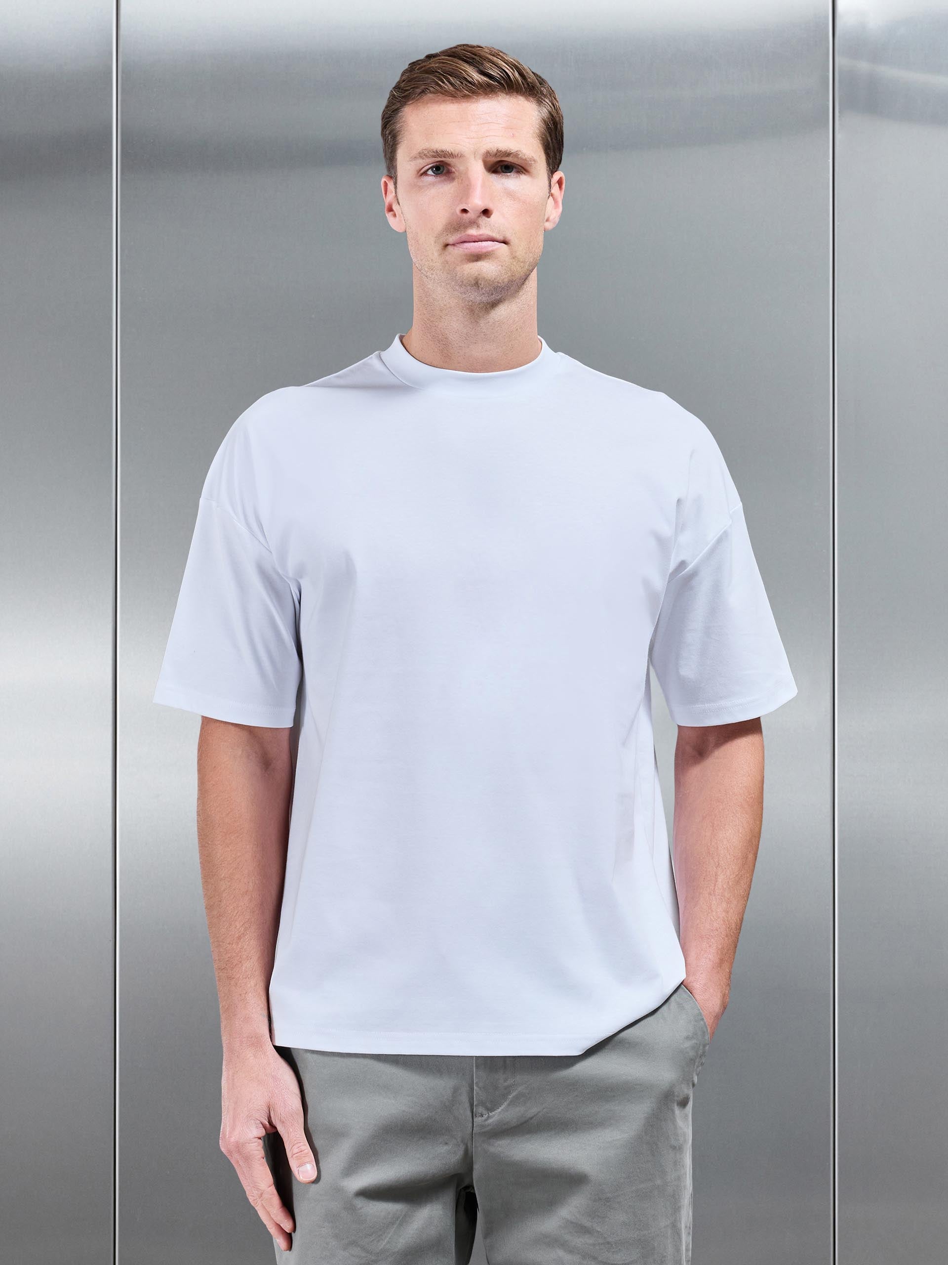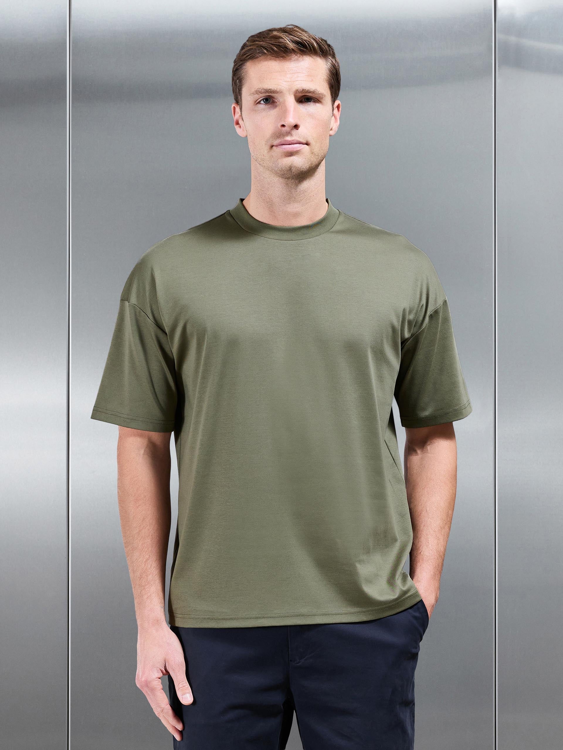 T-shirt coupe relaxed avec col rond. Interlock mi-lourd avec légère brillance. Manches courtes. Ourlets cousus.