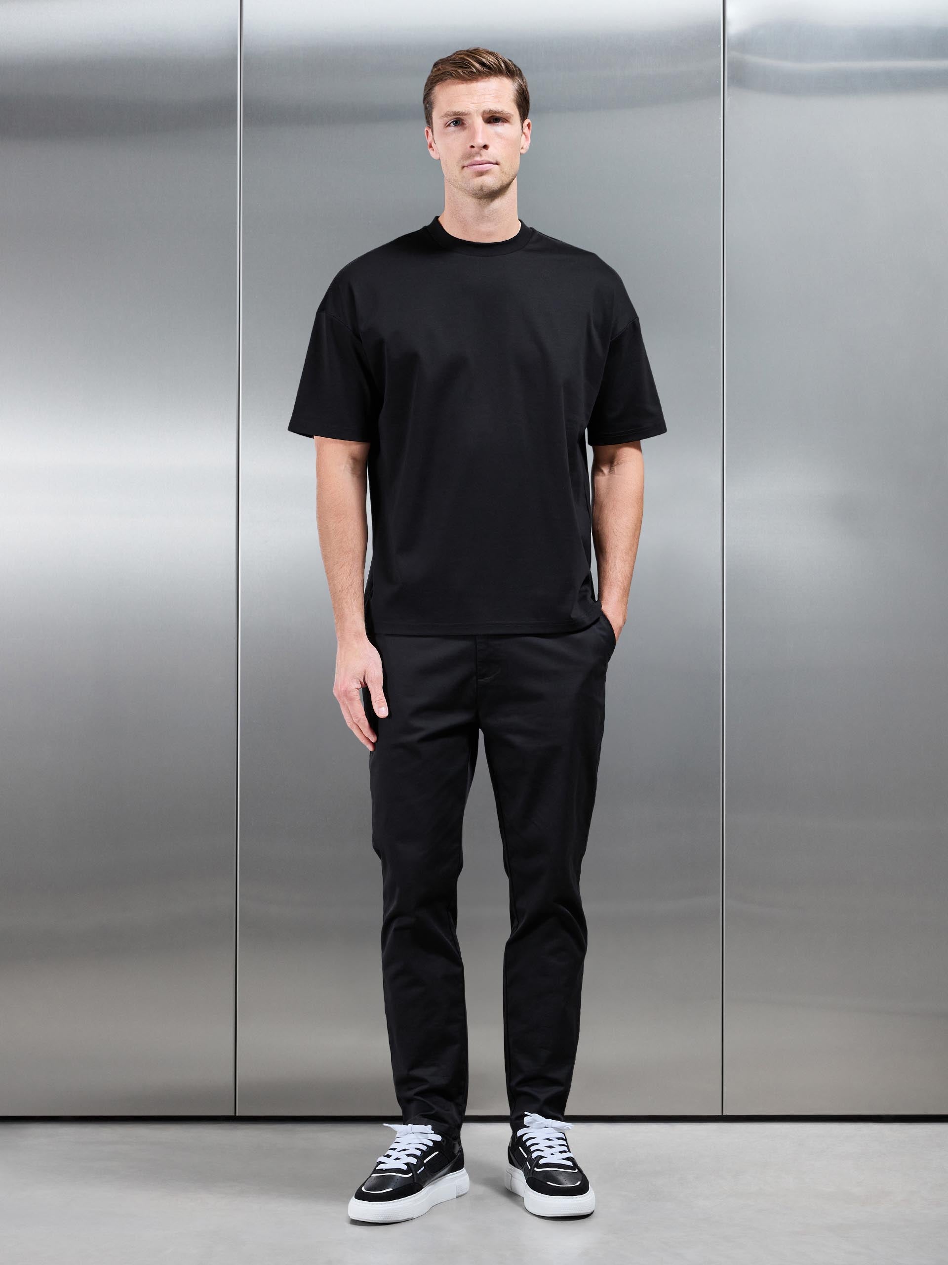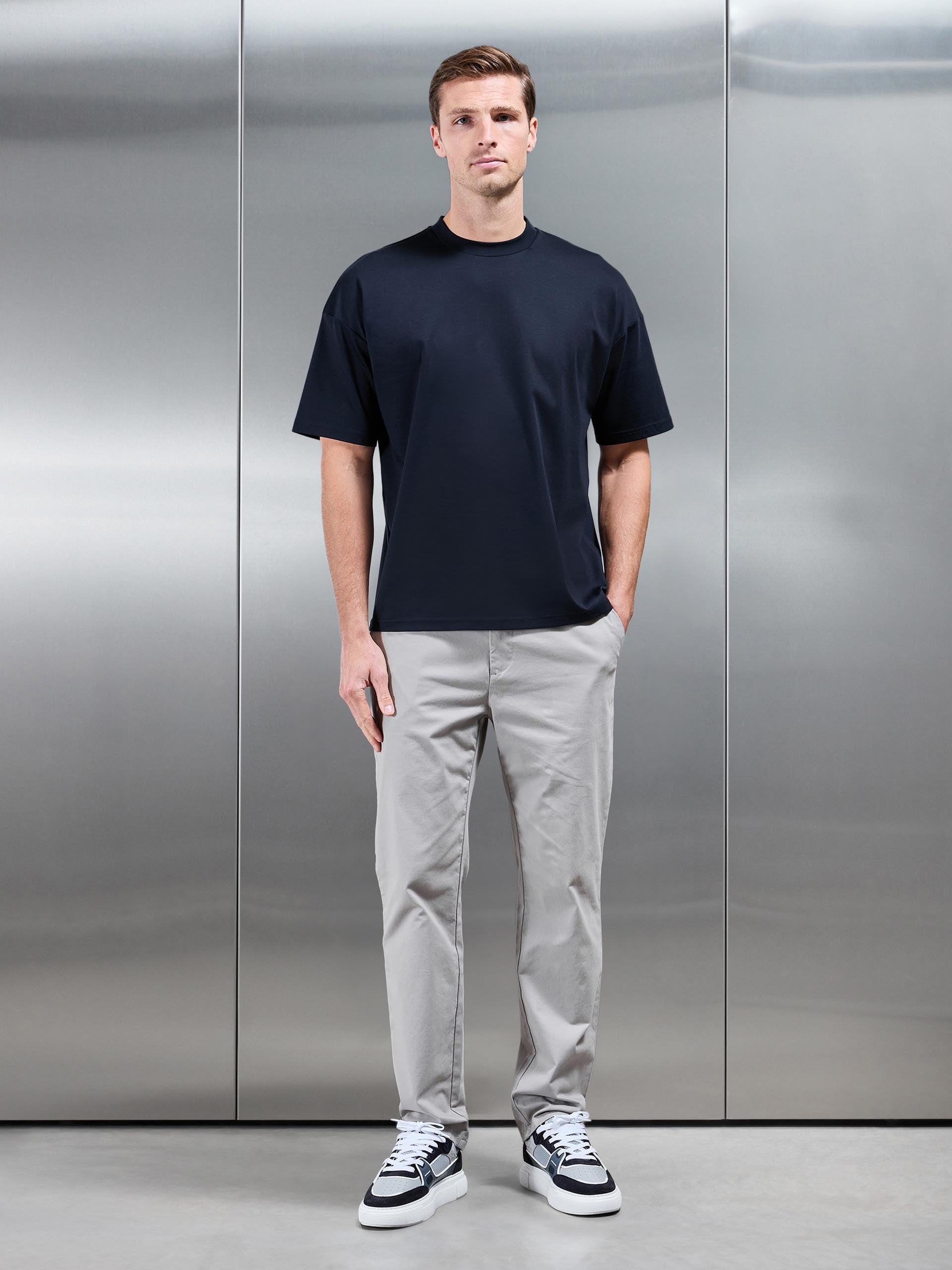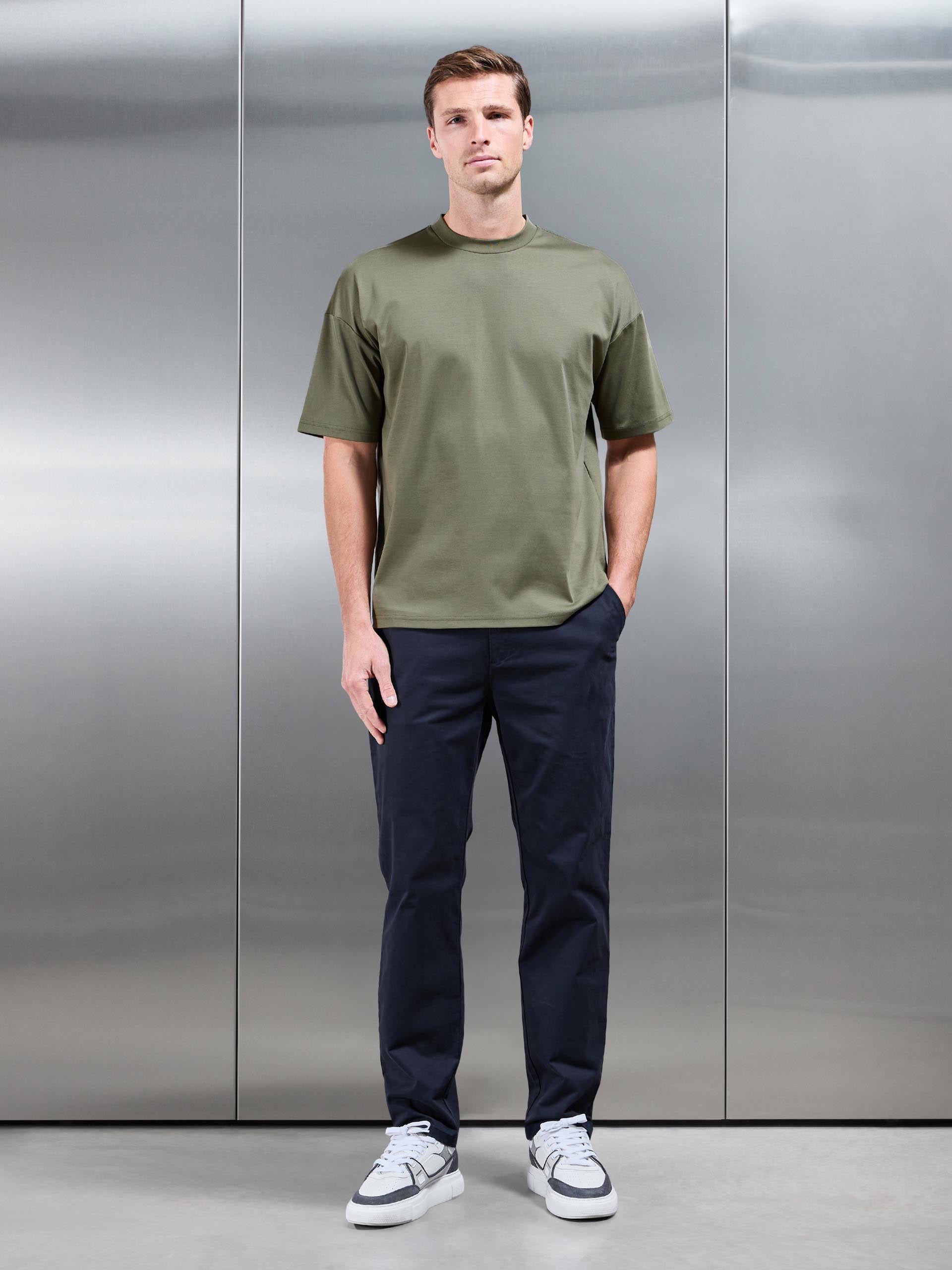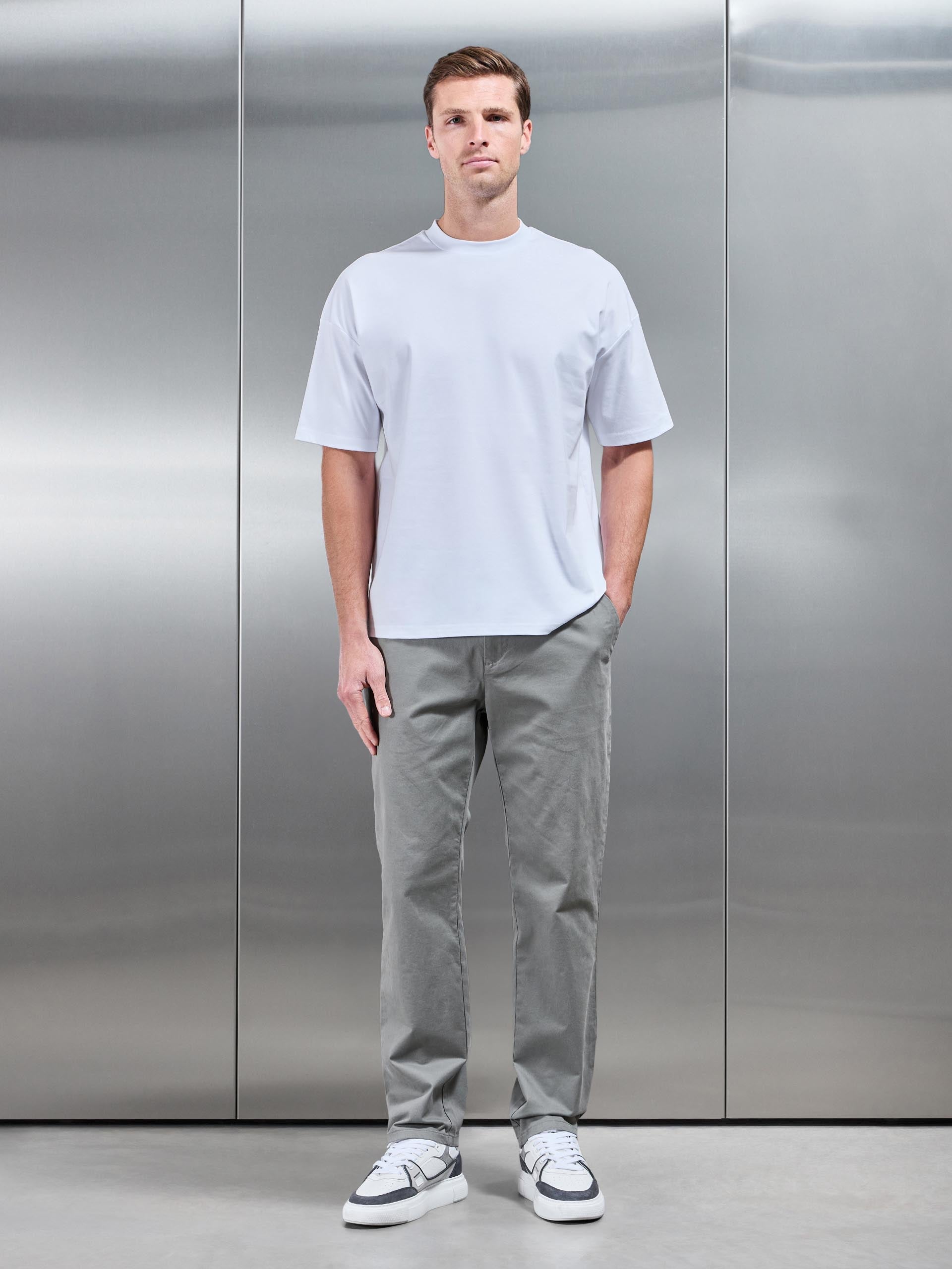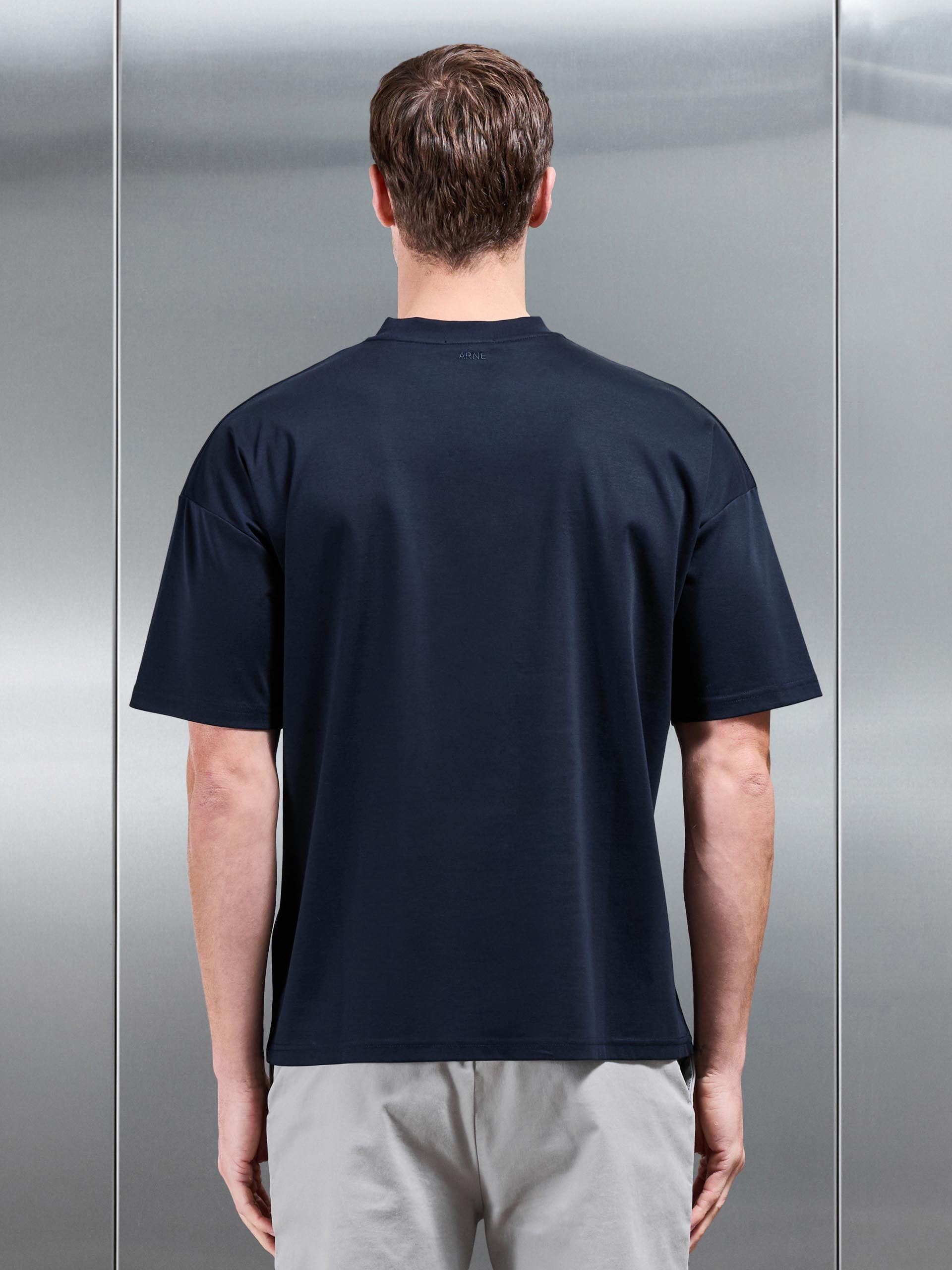 T-shirt coupe relaxed avec col rond. Interlock mi-lourd avec légère brillance. Manches courtes. Ourlets cousus.