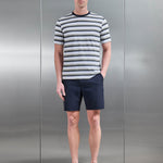 T-shirt coupe slim avec col rond. Jersey doux au toucher avec stretch. Motif multi-rayures fil teinté. Ourlet cousu sur le corps et les manches.