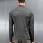 Demi-zip coupe slim avec col cheminée. Jersey léger 4 directions. Fermeture zip ton sur ton avec cordon. Manche longue avec surpiqûre double aiguille au poignet. Logo caoutchouc ton sur ton au col dos. Impressions réfléchissantes gris foncé sur l'ensemble. Ourlet cousu sur le corps et les manches.