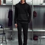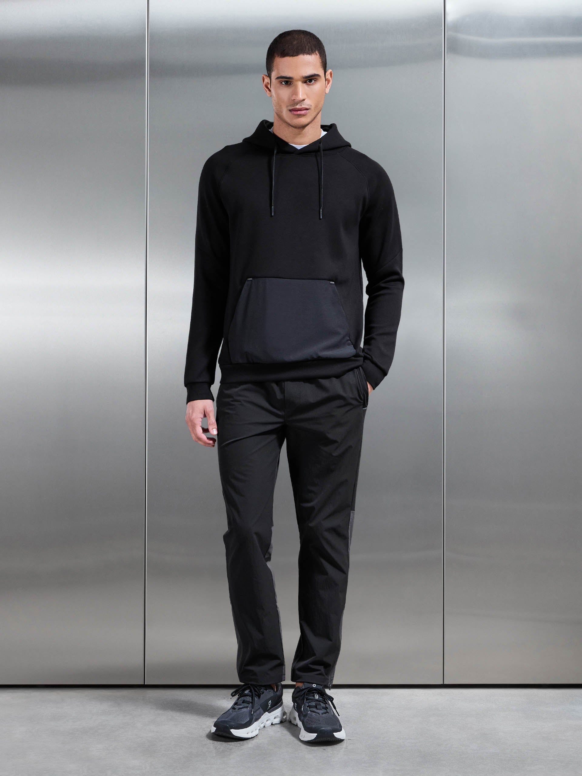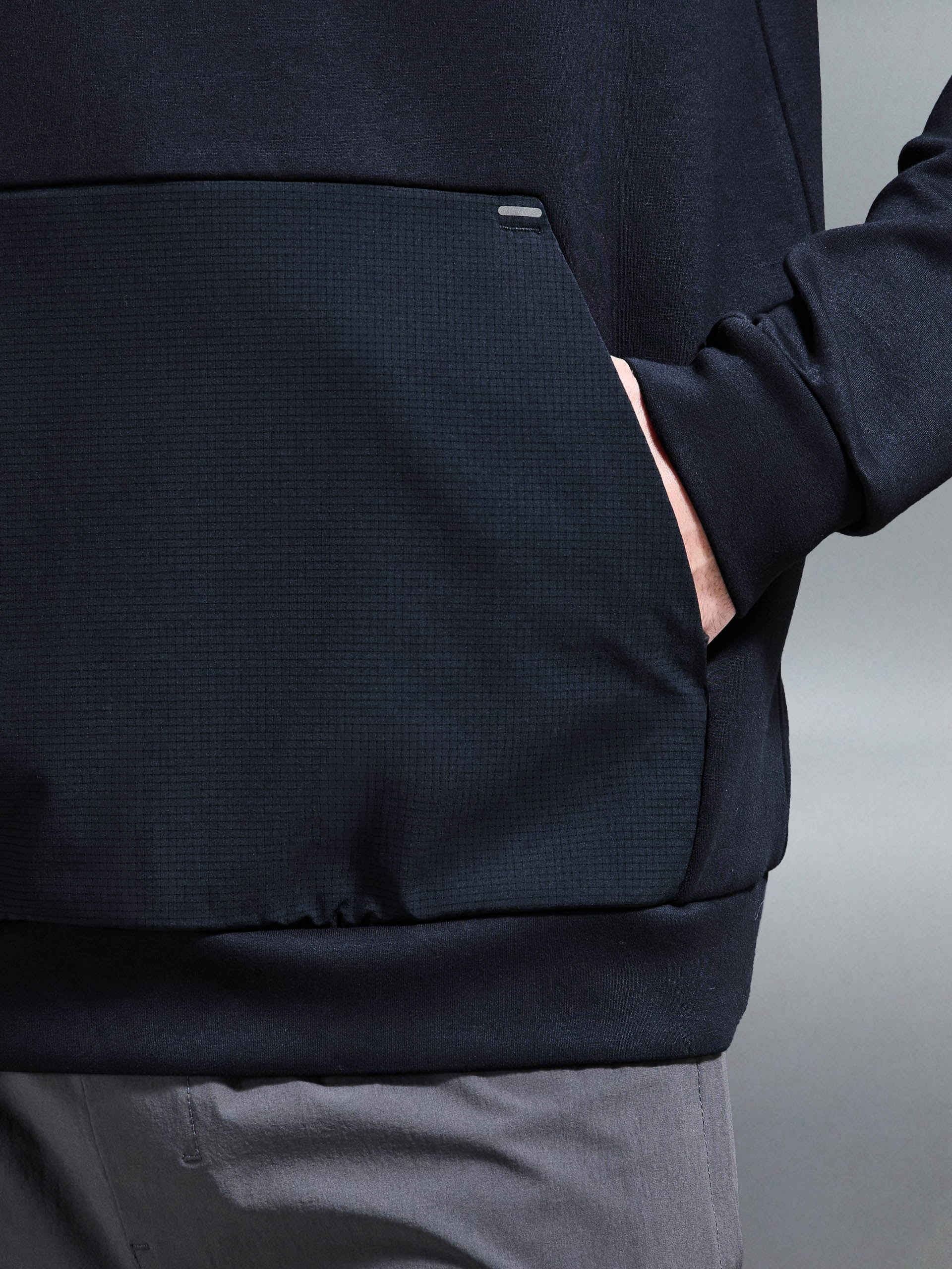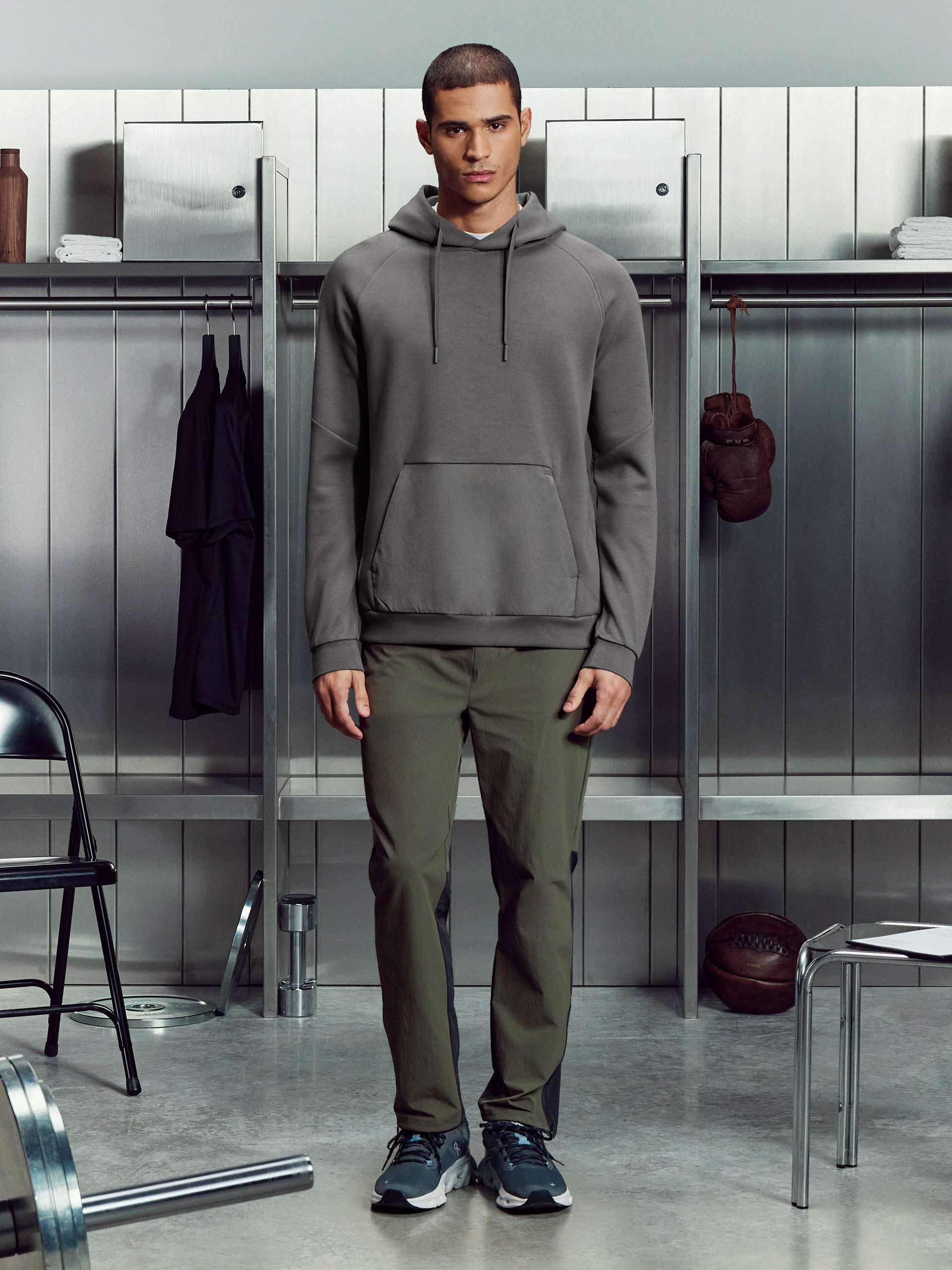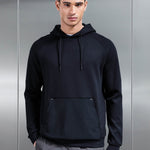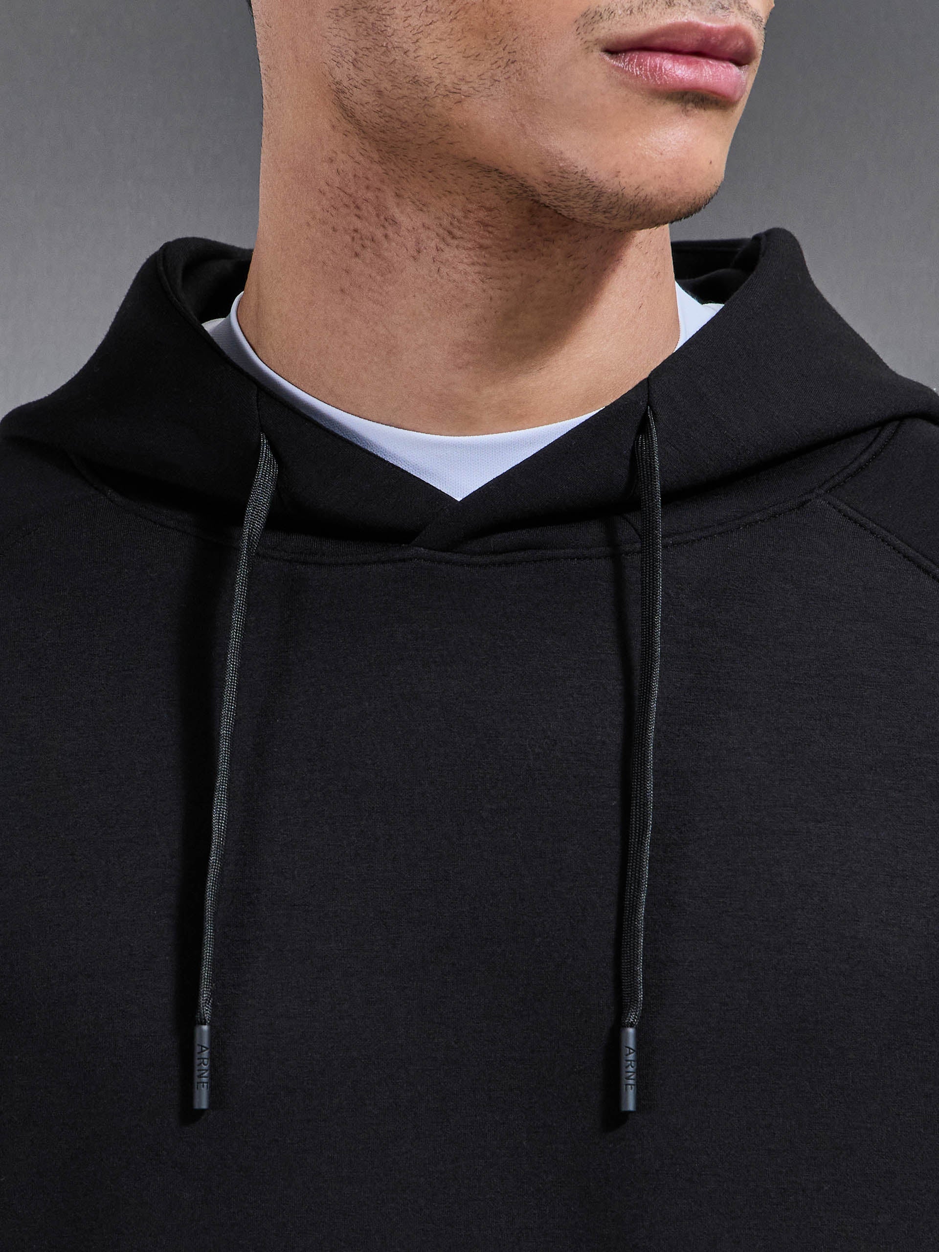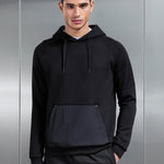 Regular fit hoodie with 3 panel hood to neckline. Ultra soft interlock jersey fabrication. Tonal flat drawcords to adjust hood opening. Raglan shaped Manches longues with self fabric hem cuffs. Tonal contrast mesh fabric kanga pocket with concealed zip fastening. Self fabric hem cuff finish.